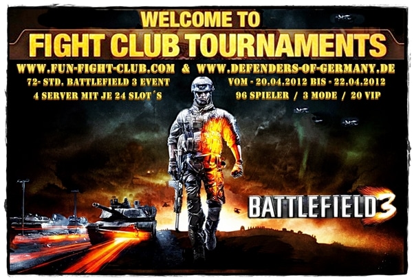 Viele kennen Turniere nur aus der Electronic Sports League. Ein Turnier der etwas anderen Art veranstalten die beiden Clans Fight Club und Defenders of Germany vom 20. April bis zum 22.Apirl 2012. Das Ziel dieses 72 Stunden Turniers ist es natürlich der Beste zu sein. Die Auswertung erfolgt nach Punkten und wird vom rcoNet überwacht. Wem der Spaß am Spielen nicht ausreich,t für den gibt es einen zusätzlichen Anreiz, denn das Turnier hält nette Preise für euch bereit.